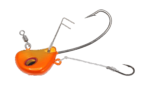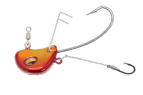 冷凍エビ、あるいはワームで活きエビ以上の釣果を持たせるため「煌流」は縦の自然な動きが出せ、さらに座りが良くフックが持ち上がり、岩礁帯や藻などのストラクチャーを回避しやすい形状に設計。躊躇なくポイントを攻めることを可能にした。