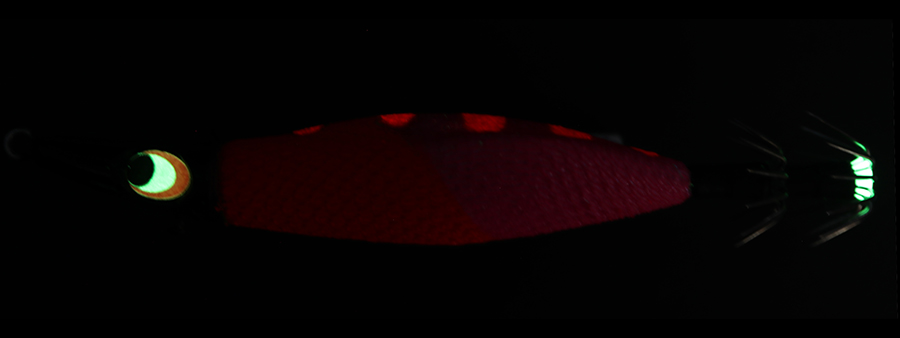 水中で光を反射、拡散させることでイカを誘うハイアピールモデル。トップには淡く光る赤夜光を配色。